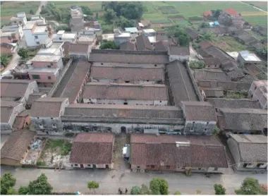 六幢屋,坐東向西,一排一幢,共6幢,建造整齊,前低后高,幢與幢之間設(shè)有側(cè)門,晚上關(guān)門防匪,也便于村民和睦相處。