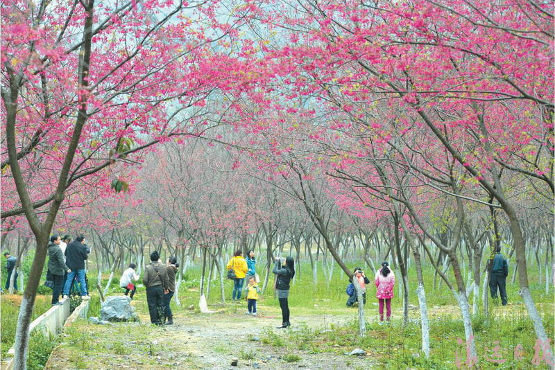 二月櫻花似云霞:二月的英德,雖然寒意仍在,但春意漸濃。在距市區(qū)10多分鐘車(chē)程西南方向的英城街通天巖百畝櫻花基地,粉紅色的櫻花絢麗地綻放了,滿樹(shù)爛漫,繁花似錦,如云似霞,蔚為壯觀。