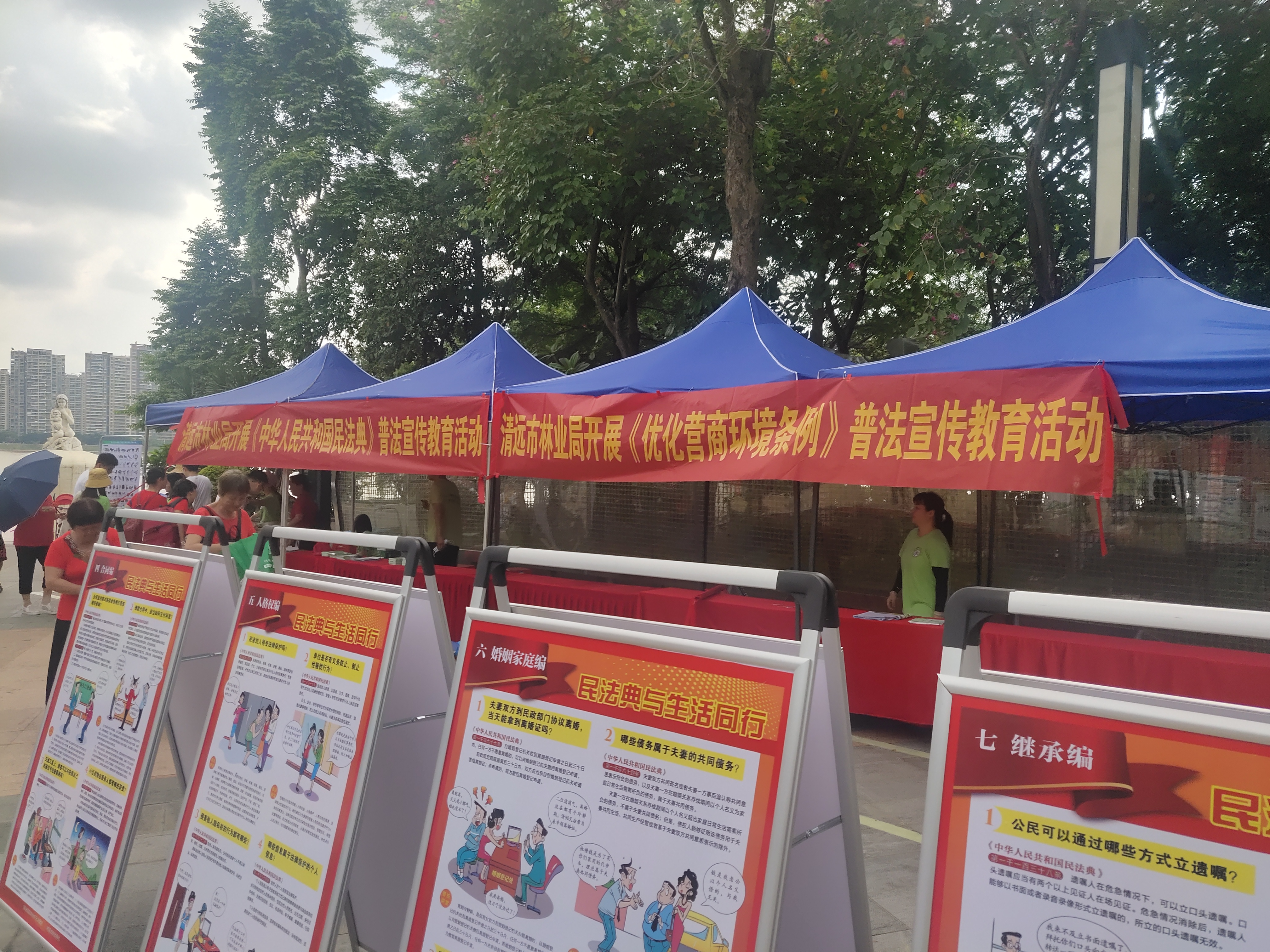 活動(dòng)中,局干部職工懸掛宣傳橫幅、展出圖例展板、派發(fā)宣傳畫(huà)冊(cè)和宣傳單張等宣傳物品,現(xiàn)場(chǎng)氣氛十分熱烈,吸引了眾多群眾參與。大家紛紛在民法典、《優(yōu)化營(yíng)商環(huán)境條例》《廣東省社會(huì)信用條例》等圖片展板前駐足觀看,學(xué)習(xí)和了解相關(guān)法律條文的圖文釋義。在場(chǎng)工作人員主動(dòng)向群眾發(fā)放森林防火安全手冊(cè)、防火安全手冊(cè)小禮品、掃黑除惡和禁毒宣傳手冊(cè)。通過(guò)此次宣傳活動(dòng),使群眾對(duì)《民法典》《優(yōu)化營(yíng)商環(huán)境條例》和《廣東省社會(huì)信用條例》都有了進(jìn)一步的認(rèn)識(shí),加強(qiáng)了群眾的守法、懂法、用法的法律意識(shí),提高了相關(guān)法律法規(guī)知曉度。