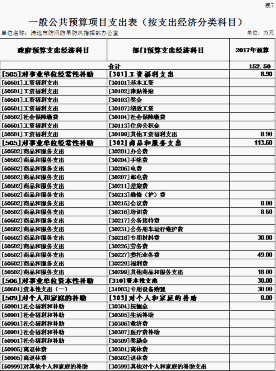 第二部分?2017年部門預算表