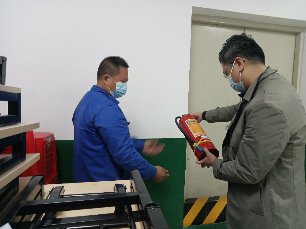 (圖為丘成杰在英德市君廷島小區(qū)檢查設(shè)備房的滅火器)
